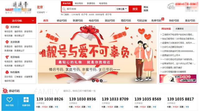 某靓号选号网站