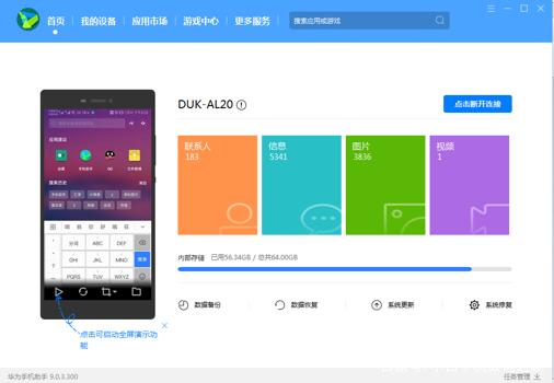 在连接完成后,就可以开始数据备份啦。这次演示依然是用有线方式备份,因为有线比无线更稳定。