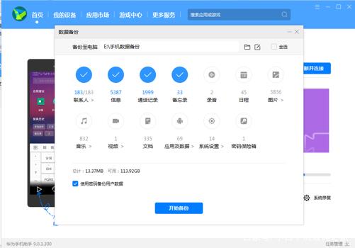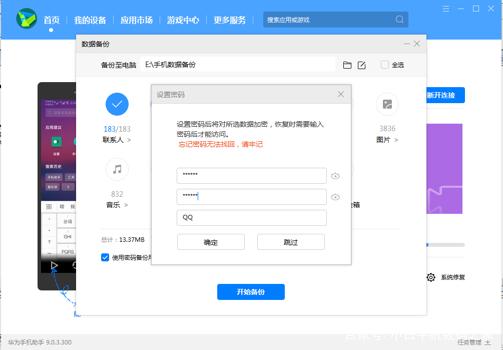 第三步:开始备份。在开始备份之前,在界面右下角可以选择是否使用密码备份你的设备数据。虽然是在本地进行数据备份,但是为了数据安全,还是建议大家选择密码备份的好。如果像我一样设置密码后容易忘也不用担心,在设置密码时会提示写下备注信息,这样就不会忘啦。
