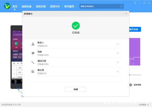 第四步:在数据备份完成后,点击完成,我们就完成了一次数据的备份了。此时数据已经备份到了本地了。