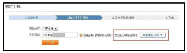 手机号码被占用了,系统会进行判断当前号码是否符合绑定条件,若符合则出现以下提示: