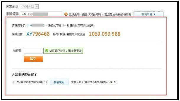 您可使用当前手机号码编辑短信发送到指定号码,系统会回复验证码,您只需输入正确的验证码即可绑定成功。
