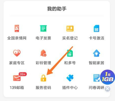 进入我的界面以后,点击服务密码。