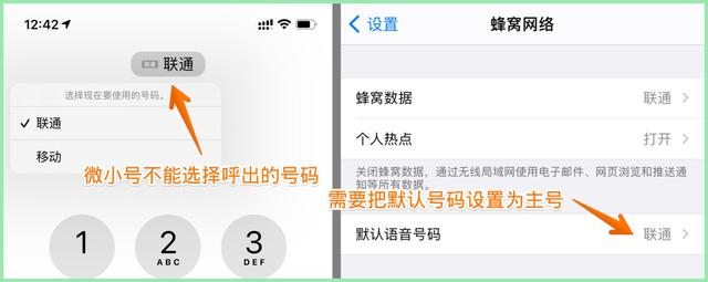 如果是双卡双待手机,微小号拨打电话时,不能让用户选择用哪个号码呼出,如果手机默认呼出号码不是主号,则无法拨通电话,需要用户在手机的系统设置界面,把主号设置为默认号码。