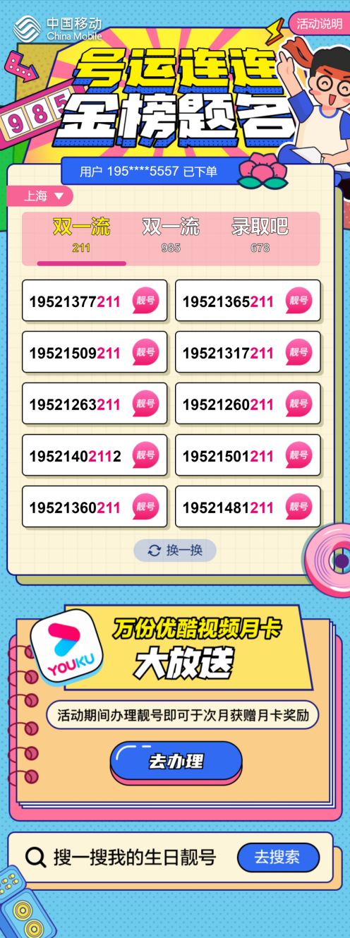 @大学新生:上名校,PICK上海移动“双一流”专属靓号!收入囊中吧!2021-09-17关键词: 上海移动双一流专属靓号 阅读(340)