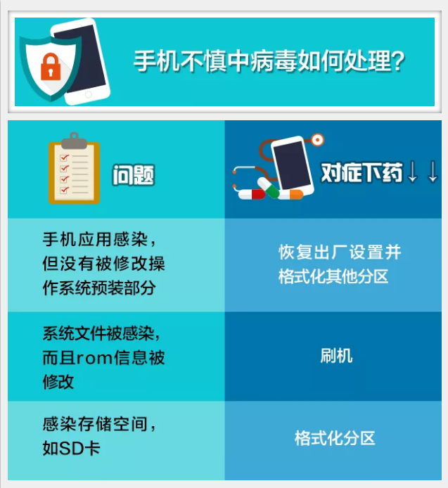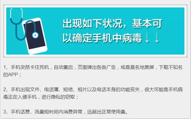 然鹅,手机中病毒后,大多小伙伴是无法判断病毒感染了手机哪个部分滴,那肿么办?最简单滴方法,依照以下顺序来排解问题↓↓