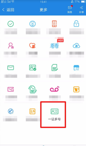 4、进入“更多”的页面之后,我们找到并打开“一证多号”的功能。如下图所示