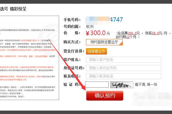 6、选好自己看中的号码,点击预约按钮图标,输入预约人的身份信息,点击确认预约按钮,就可以到附近营业厅去领取选定的号码了。