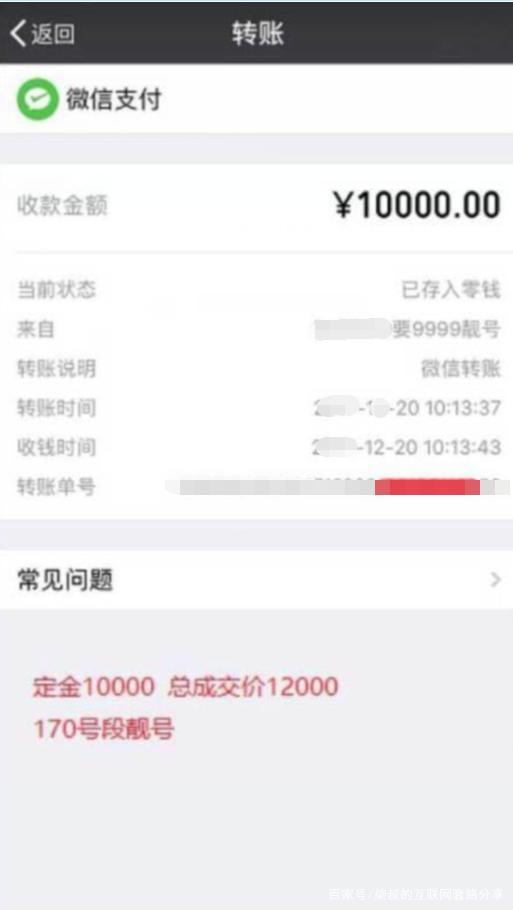 现在一个老号段,比如说135、136、138、137、139,类似这样开头的,尾数是3连号的号码,中间不是特别差的话,这个号至少在1万块钱以上,