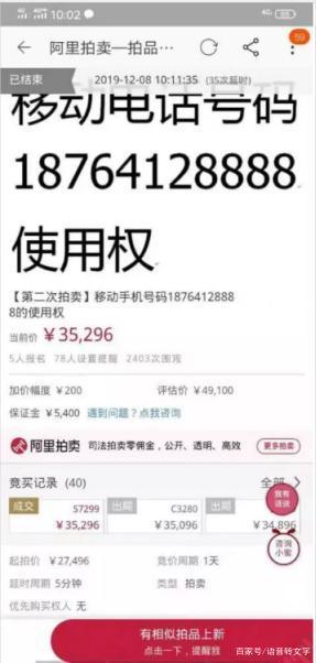 近日,手机尾号8888与尾号99666通过网络评估机构确定了财产价值,最终以35296与6650的价格成交。