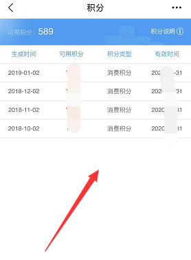 进入积分明细界面,详细记录了你的积分记录,如下图所示