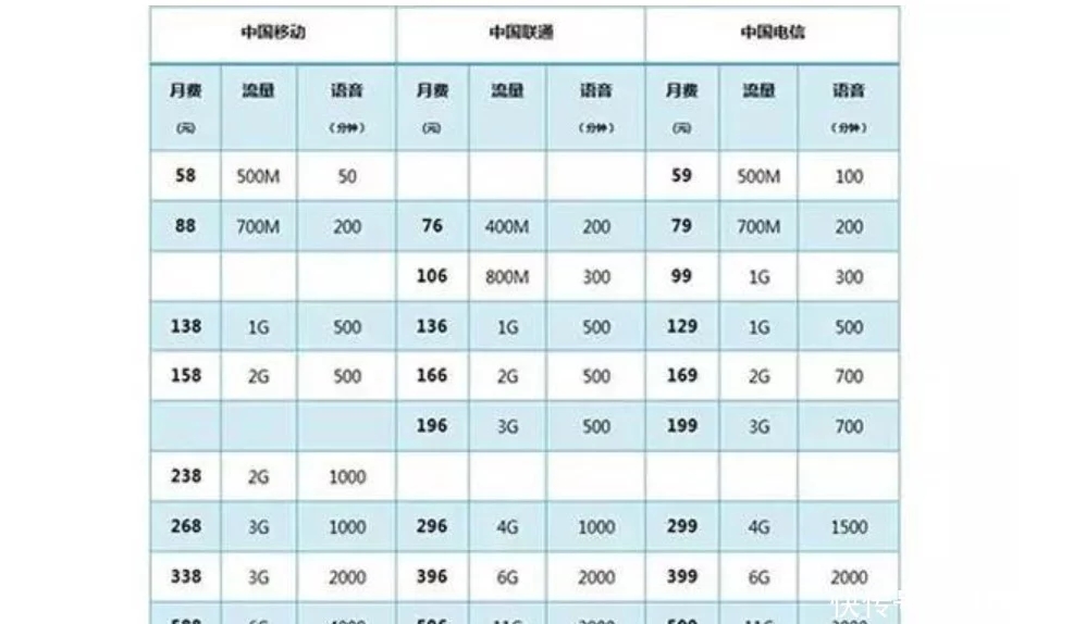 从下面三大运营商的4G套餐我们能够看出一些端倪: