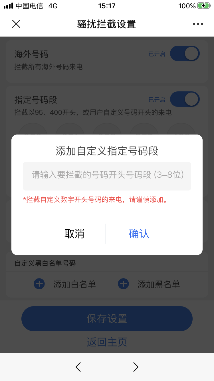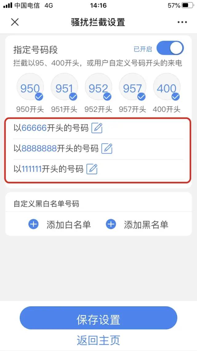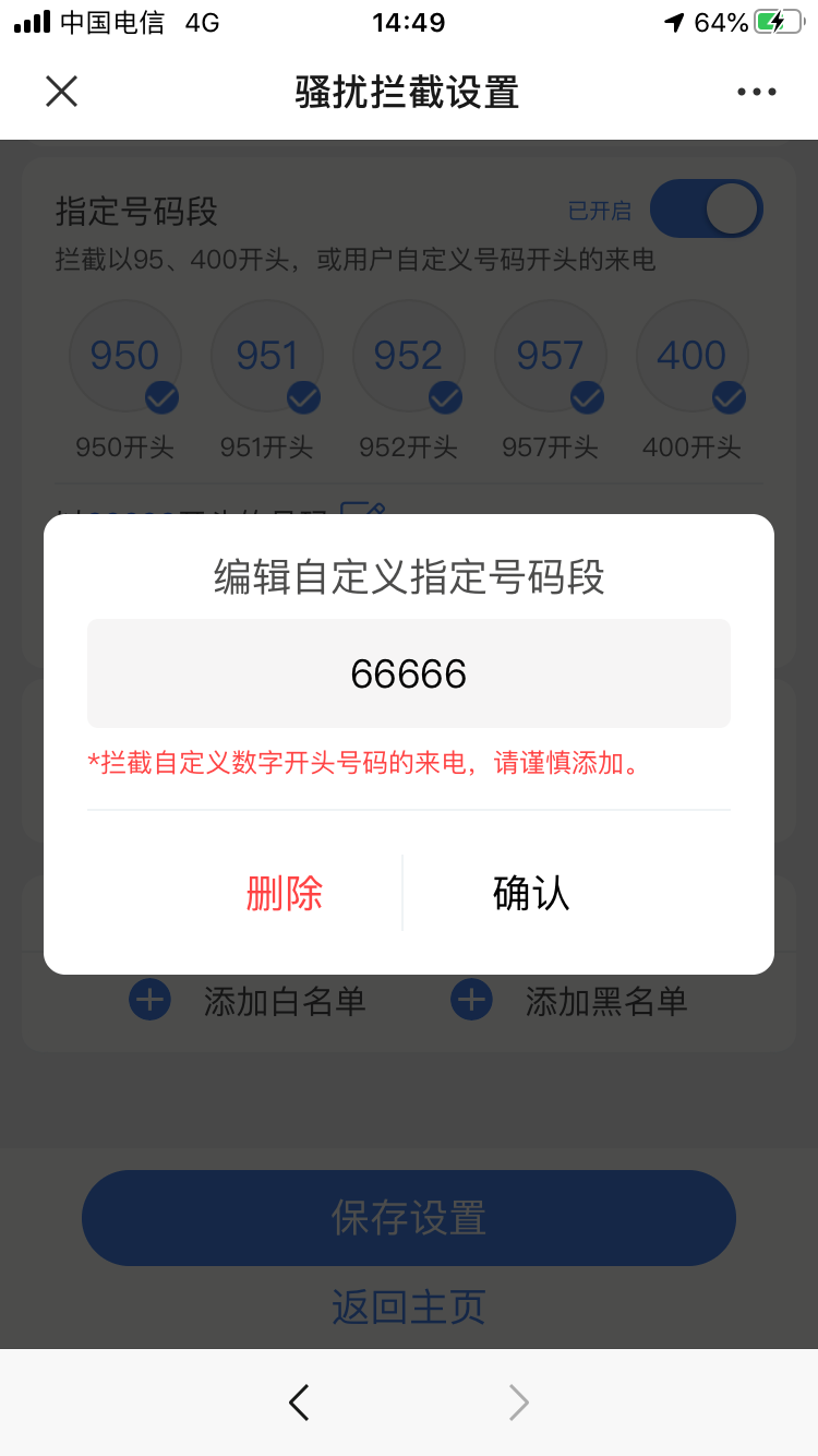针对一些固定号段的骚扰电话自定义指定号码段拦截功能已经来咯!