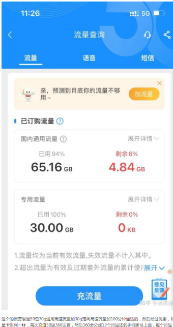 需要注意的是这个卡只有一年优惠期,一年后就会变成永久性的59包70g通用高速流量加30g定向高速流量加100分钟通话了,不过想想还是可以的,我研究了三大运营商的套餐资费,像这种100g的大流量卡起码要80左右的资费,线下会更贵些。