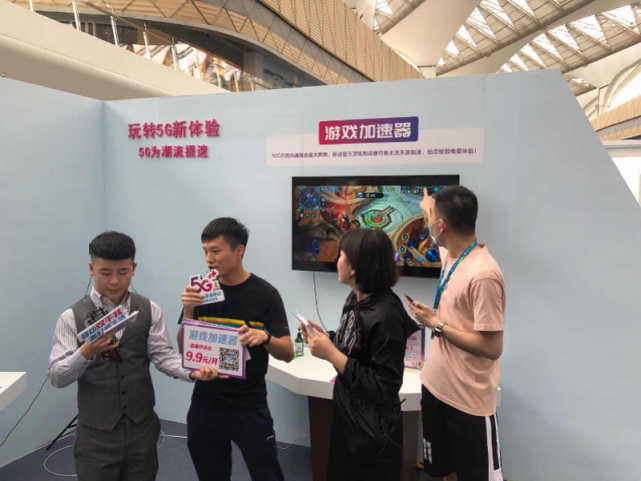 在5G终端区域聚集了很多年轻人,这里摆满了5G手机,每一部手机都像一件艺术品,吸引不少市民。一位体验者在感受5G后直呼:“5G游戏加速器太牛了,上王者/吃鸡6到飞起,有了5G,他们都不是我的对手了!”