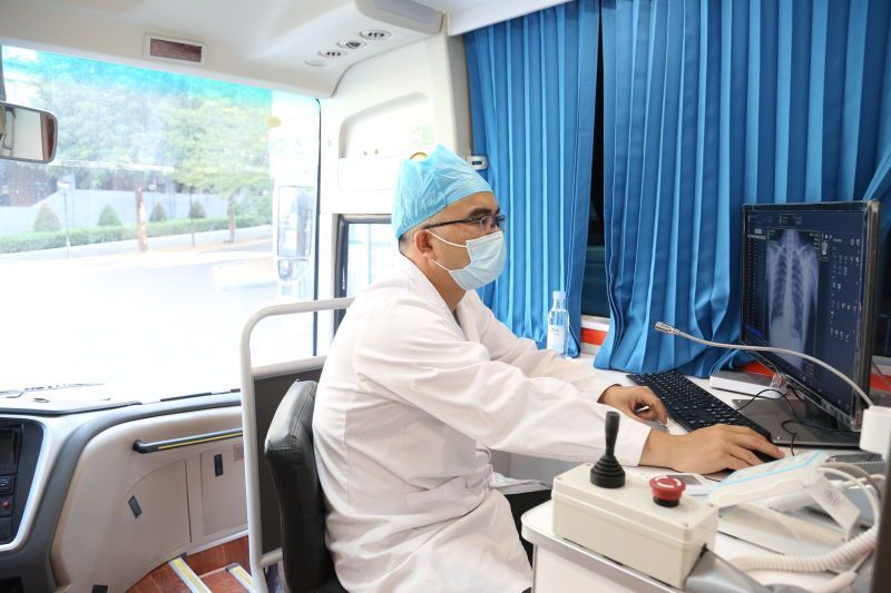 “5G全面覆盖体检全流程,像DR、超声这类项目,我们体检车在院外,也能实现实时上传数据,检查结果可以实时传回院内,现场即可出诊断意见,大大提高了体检效率。”医院副院长张海春介绍,目前体检车主要是为团队提供体检服务,过去入学体检每个学生最快也要45分钟完成的体检,如今只需要半小时即可完成。