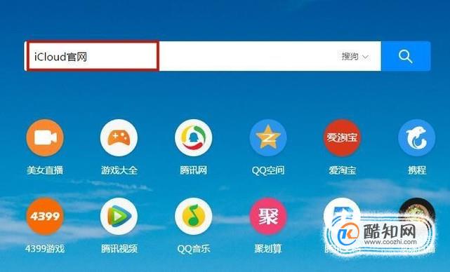 首先在浏览器中输入iCloud官网并点击回车键,如下图所示。