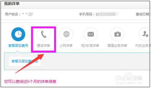 然后在我的详单页面,可以查询近6个月的详单,点击“通话详单”。