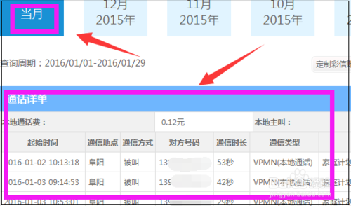 要查看哪个月的详单,就点击哪个月,然后就可以看到这个月的通话详单以及收费等情况了。此外还可以查看流量和短信等费用情况,更多详情大家可以自己去查看哦!