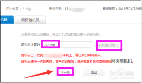 进入我的详单页面,点击“获取验证码”,然后输入手机收到的短信验证码,点击“下一步”
